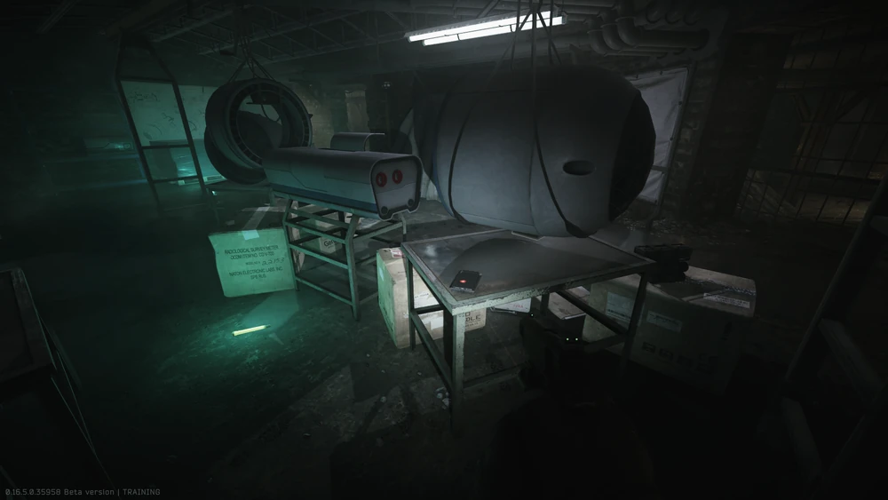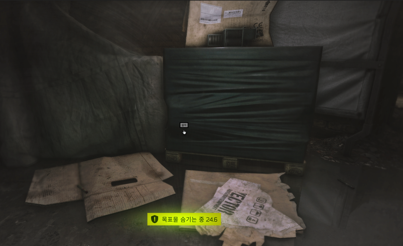 조립장 뒤편 널빤지와 조립대 사이에서 설치 상호작용이 가능합니다. 인벤토리에 데미지가 있는 수류탄이 있어야 합니다.