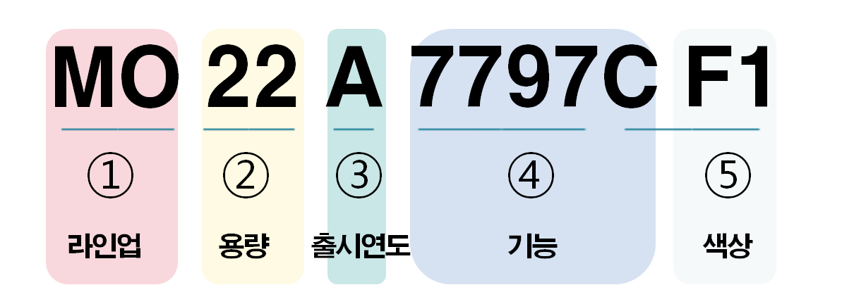 제품의 출시연도를 의미합니다. 2021년부터 알파벳 A순서로 시작합니다.