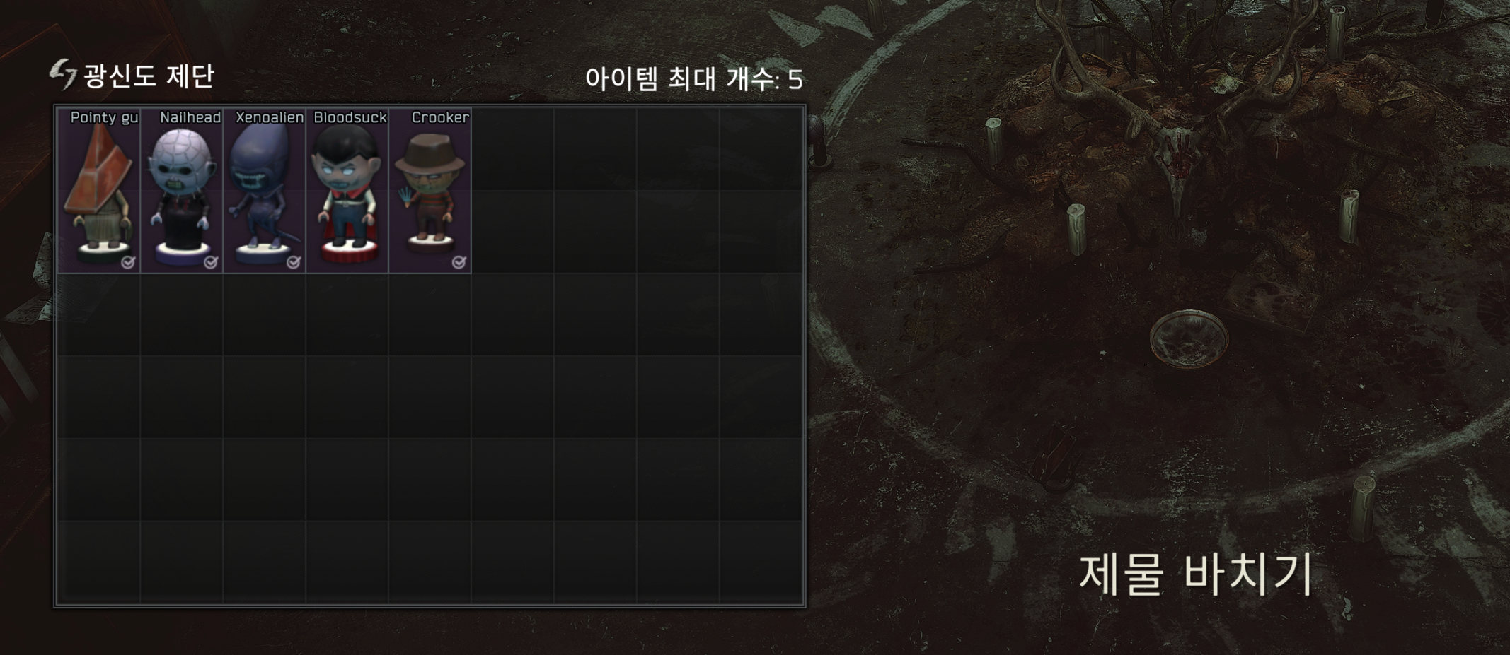 아래 사진처럼 컬티 제단에 5개의 피규어를 바치면 됩니다.