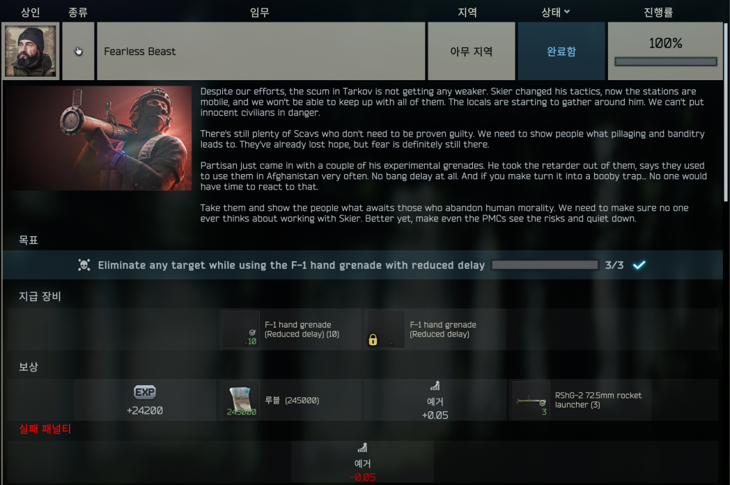타르코프 퀘스트 - Fearless Beast 본문