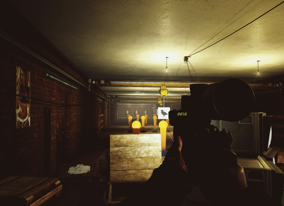 참고로 은신처(Hideout)의 사격장 끝에서 끝이 50m입니다.