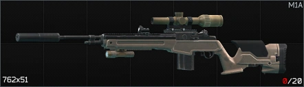 - Hybrid 46 소음기, Schmidt & Bender PM II 1-8x24 조준경이 장착된 M1A 소총으로 60미터를 초과한 거리에서 PMC 5명을 사살하세요.