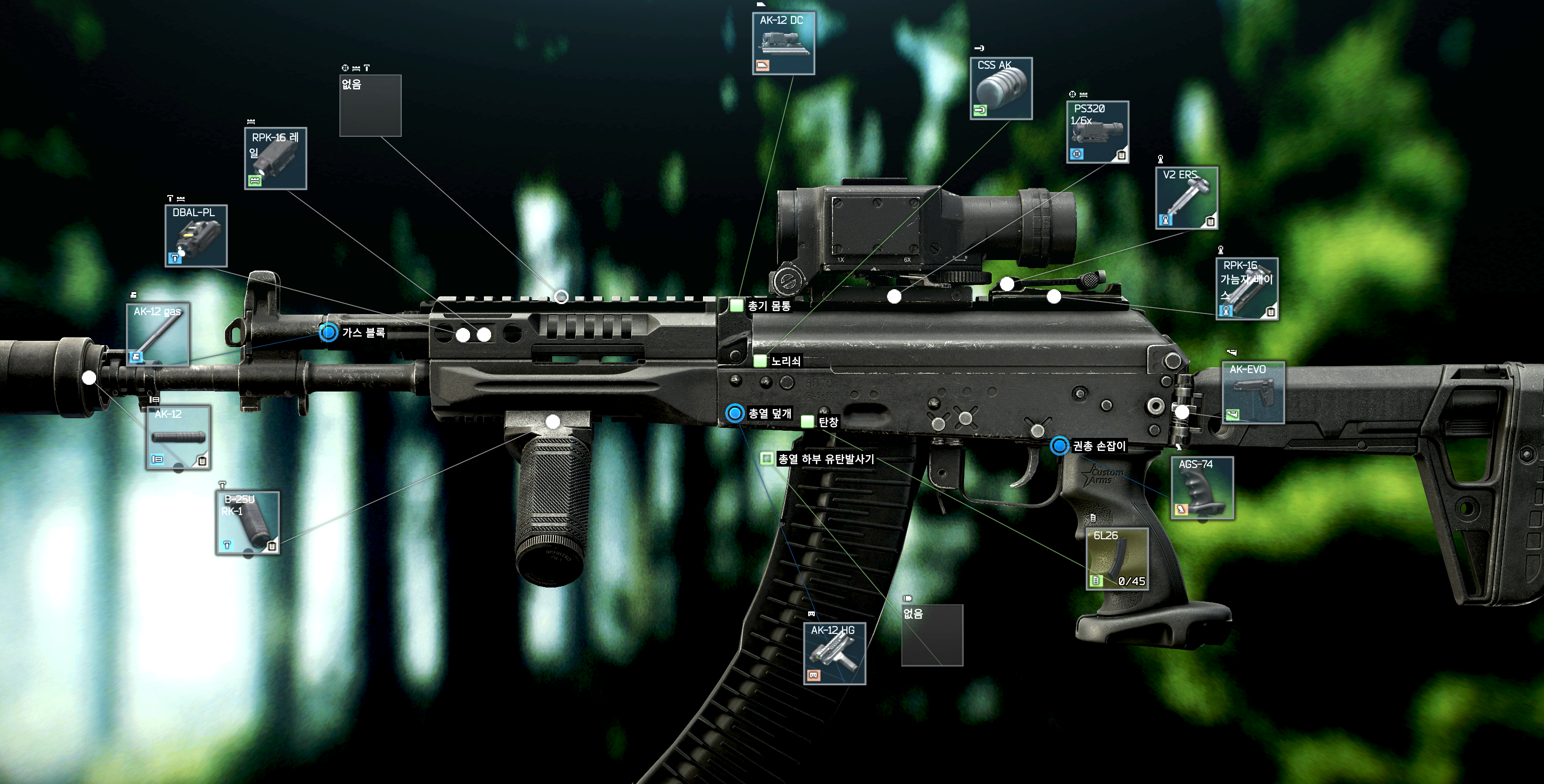 ak-12에 장착되는 소음기는 AK-12 5.45x39 sound suppressor 한 가지만 장착됩니다.