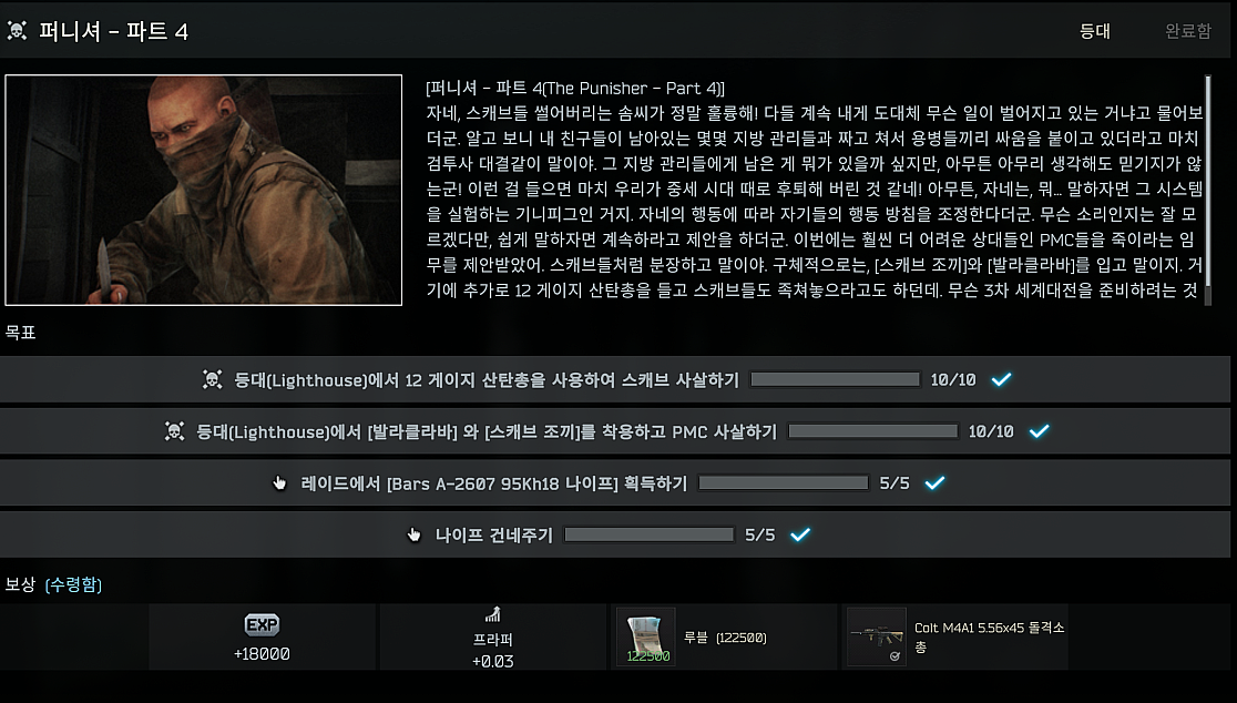 * 다음 퍼니셔 파트5에서 인레이드 M4 1정을 제출해야 하니 지급받은 M4를 잘 간직하시길 추천드립니다.