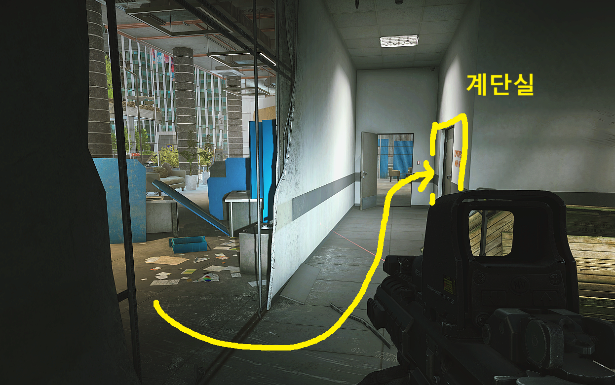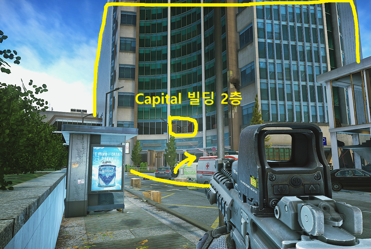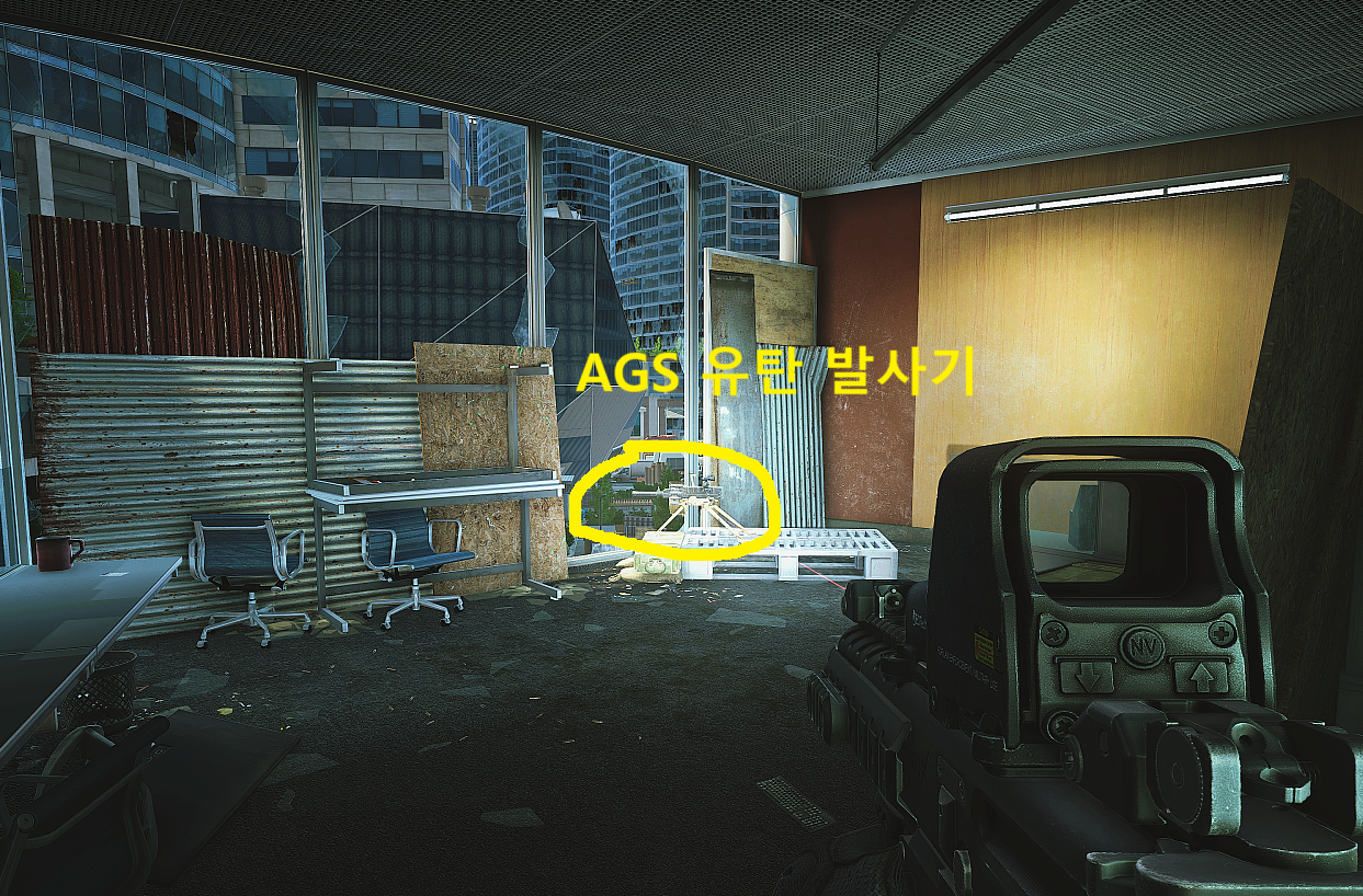 Capital 빌딩 2층에 있습니다. 밖에서도 AGS 유탄 발사기가 어렴풋이 보입니다.
