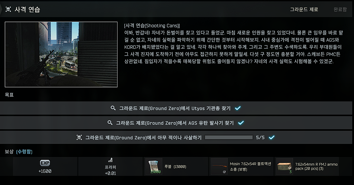 타르코프 퀘스트 - 사격 연습(Shooting cans) 본문