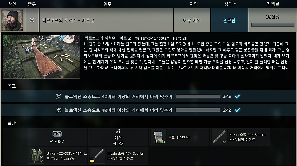 타르코프 퀘스트 - 타르코프의 저격수 - 파트 2 (The Tarkov Shooter - Part 2) 본문