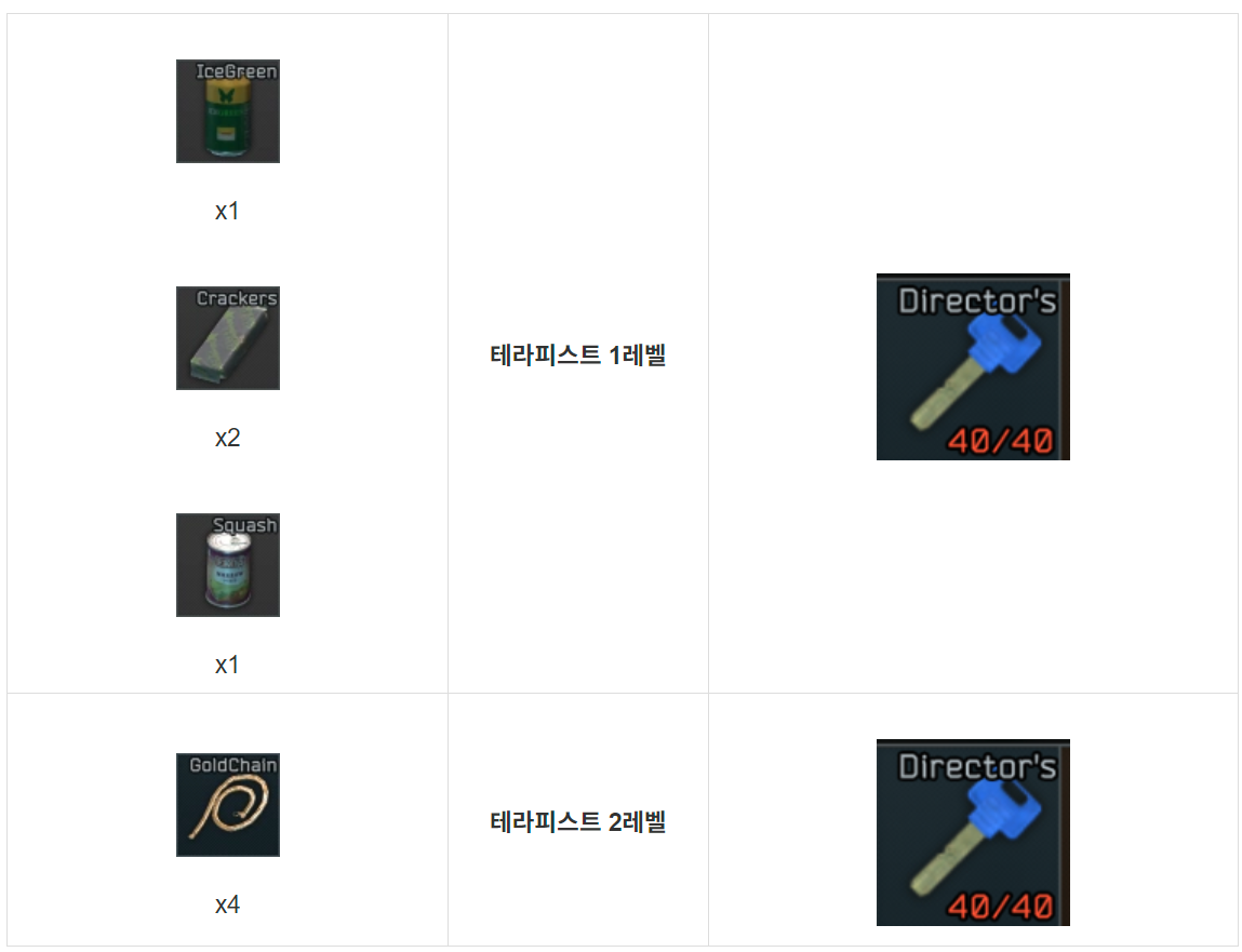 열쇠는 루팅으로 얻거나 테라피스트에게 교환도 가능합니다.