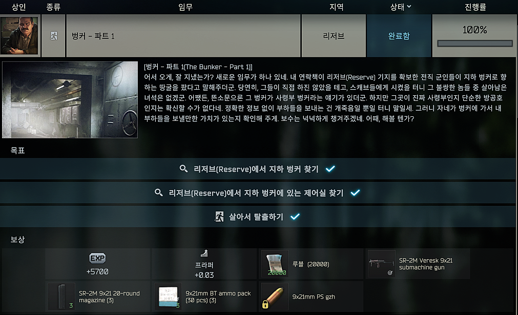 타르코프 퀘스트 - 벙커 - 파트 1 (The Bunker - Part 1) 본문