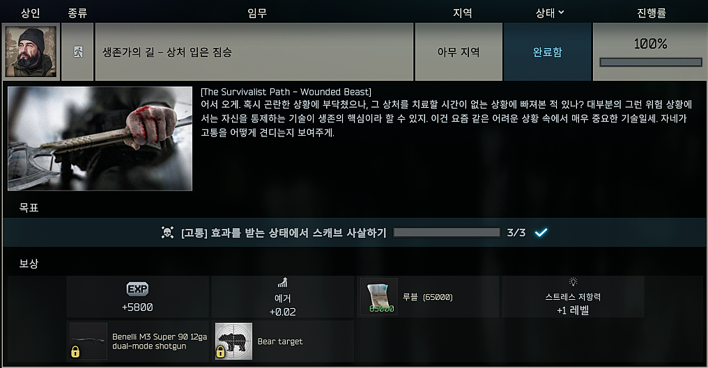 타르코프 퀘스트 - 생존자의 길 - 상처 입은 짐승 (The Survivalist Path - Wounded Beast)