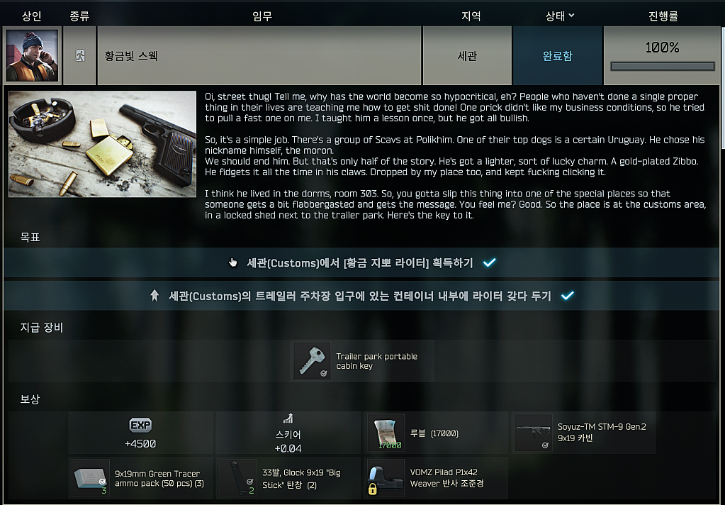 타르코프 퀘스트 - 황금빛 스웩 (Golden Swag) 본문