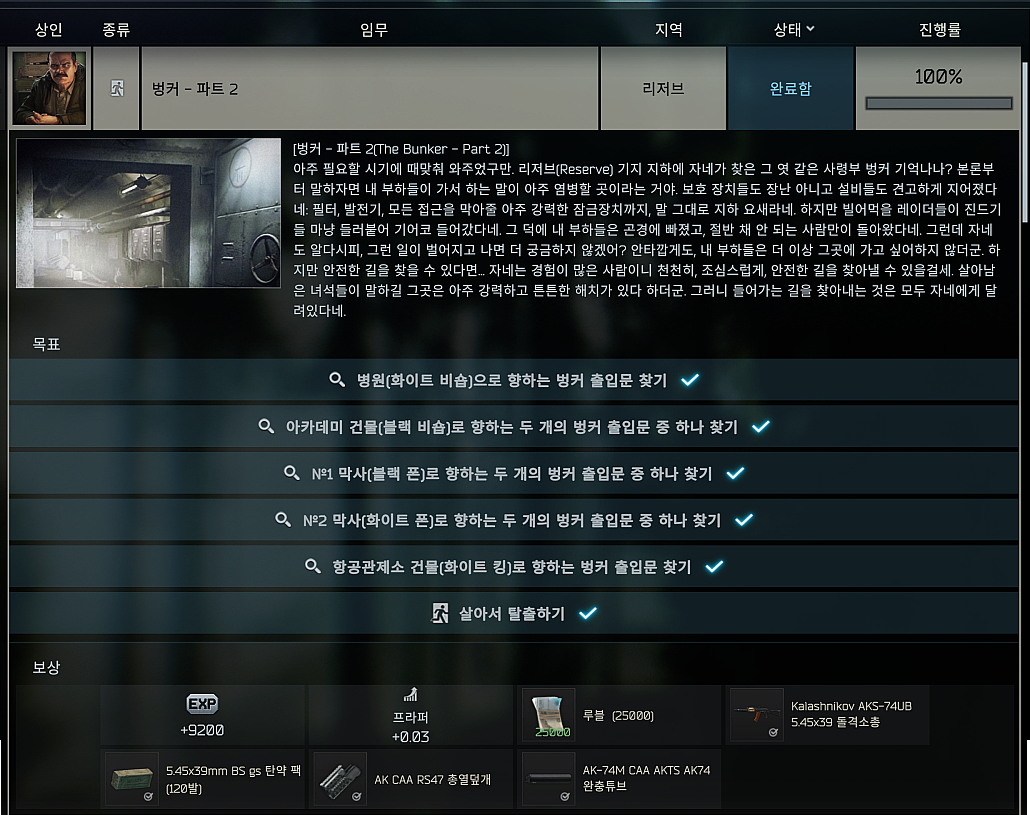 타르코프 퀘스트 - 벙커 - 파트 2 (The Bunker - Part 2) 본문