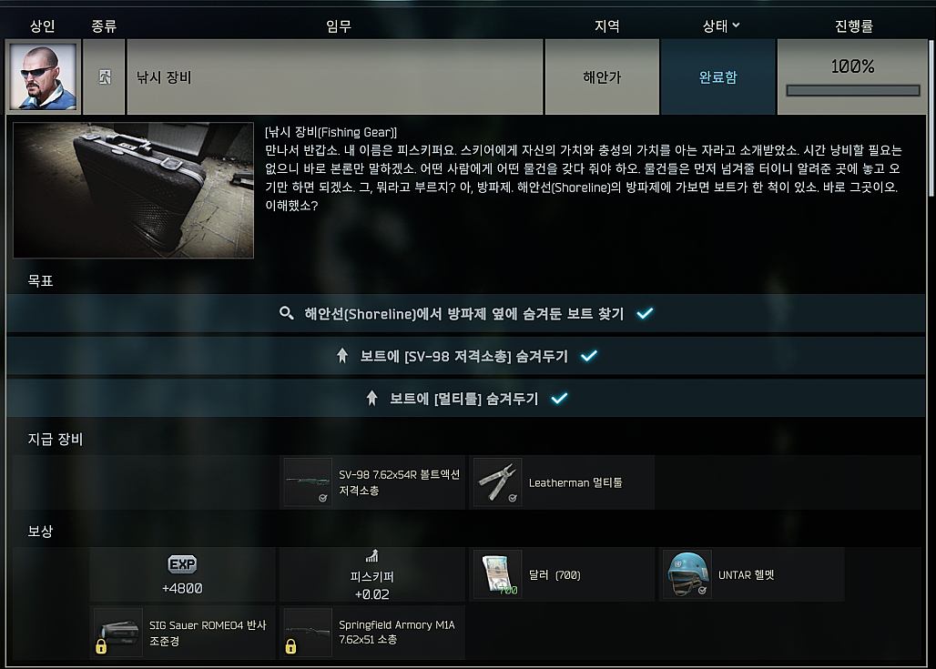 타르코프 퀘스트 - 낚시 장비 (Fishing Gear) 본문