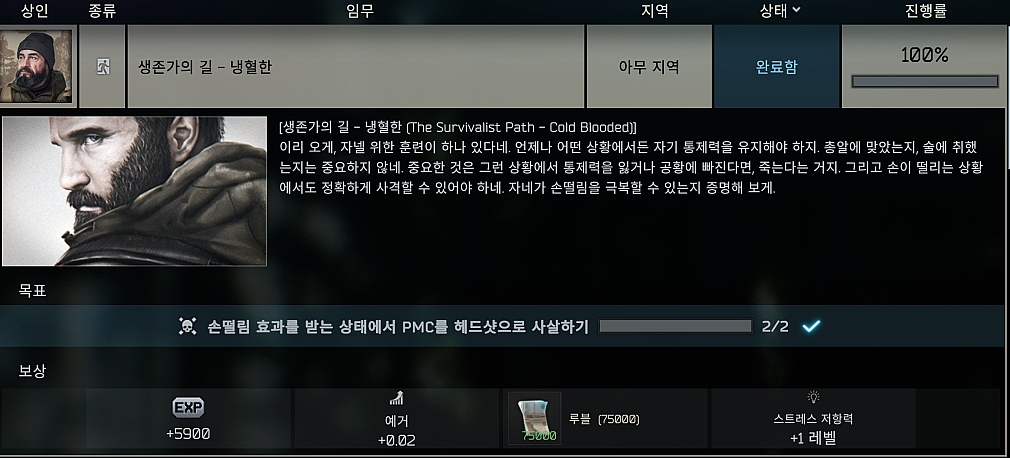 타르코프 퀘스트 - 생존가의 길 - 냉혈한 (The Survivalist Path - Cold Blooded)