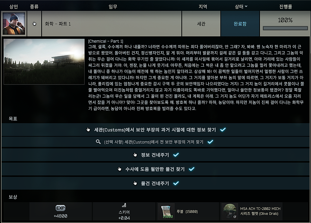 타르코프 퀘스트 - 화학 - 파트 1 (Chemical - Part 1) 본문
