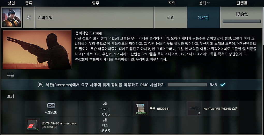 타르코프 퀘스트 - 준비작업 (Setup) 본문