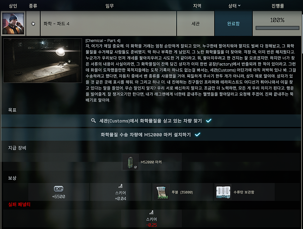타르코프 퀘스트 - 화학 - 파트 4 (Chemical - Part 4) 본문