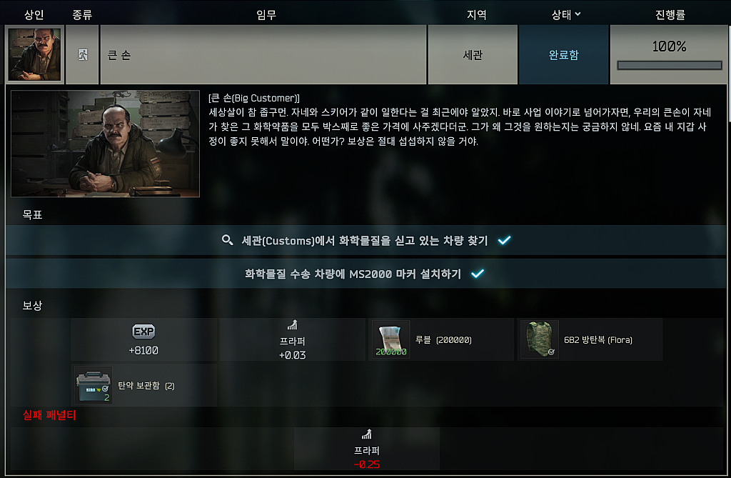 타르코프 퀘스트 - 큰 손 (Big Customer) 본문