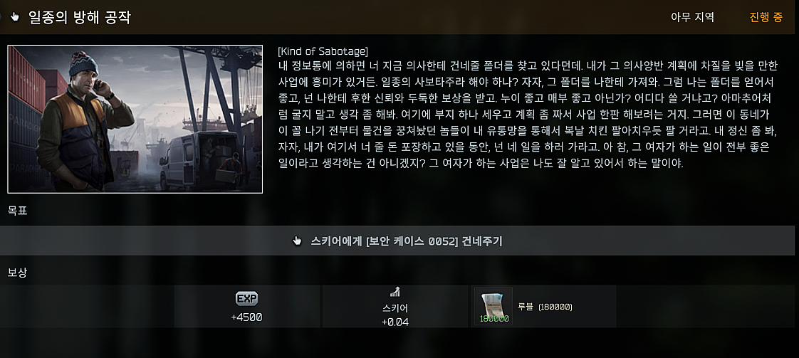 타르코프 퀘스트 - 일종의 방해 공작 (Kind of Sabotage) 본문