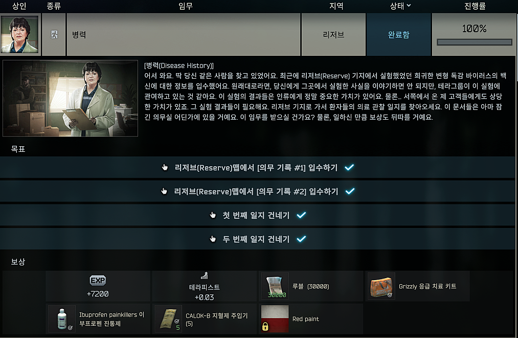 타르코프 퀘스트 - 병력 (Disease History) 본문