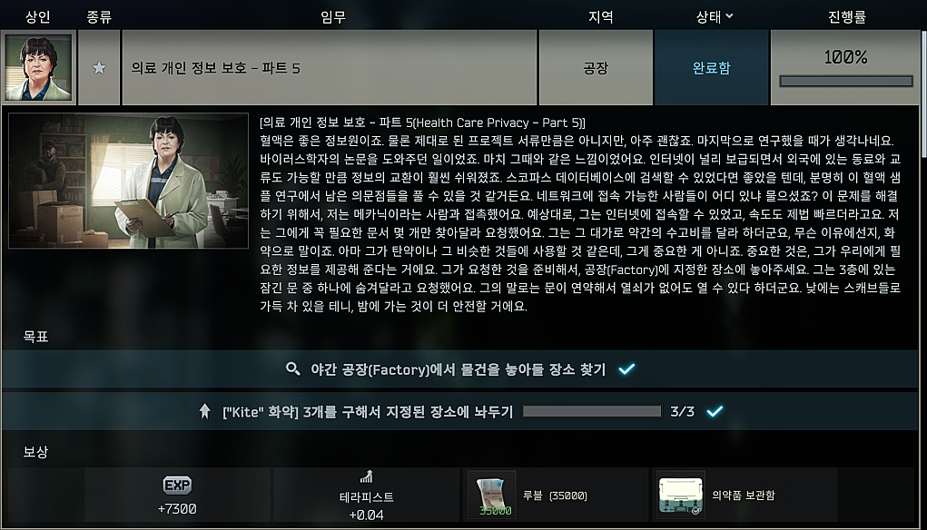 타르코프 퀘스트 - 의료 개인 정보 보호 - 파트 5 (Health Care Privacy - Part 5) 본문