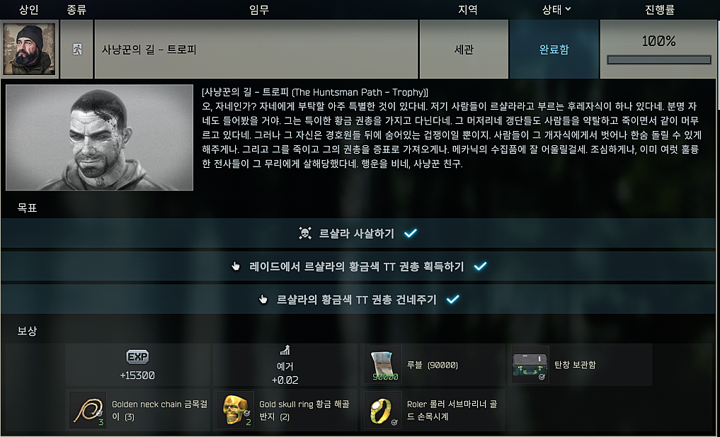 타르코프 퀘스트 - 사냥꾼의 길 - 트로피 (The Huntsman Path - Trophy)