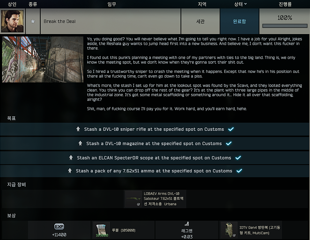| 타르코프 퀘스트 - 신호 - 파트 2 (Signal - Part 2) (0) | 2025.08.06 |