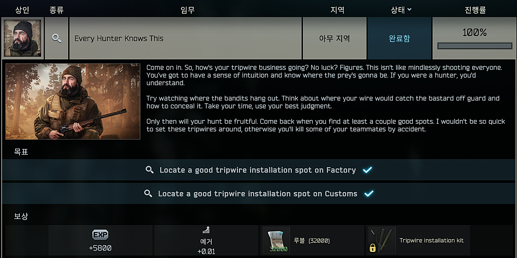 타르코프 퀘스트 - Every Hunter Knows This 본문