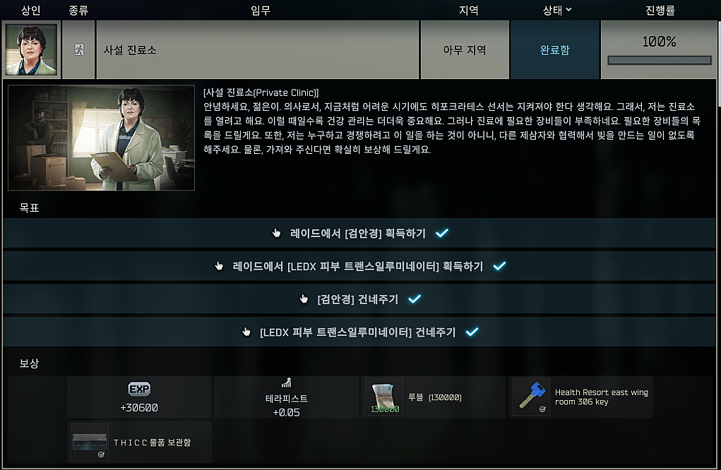 타르코프 퀘스트 - 사설 진료소 (Private Clinic) 본문