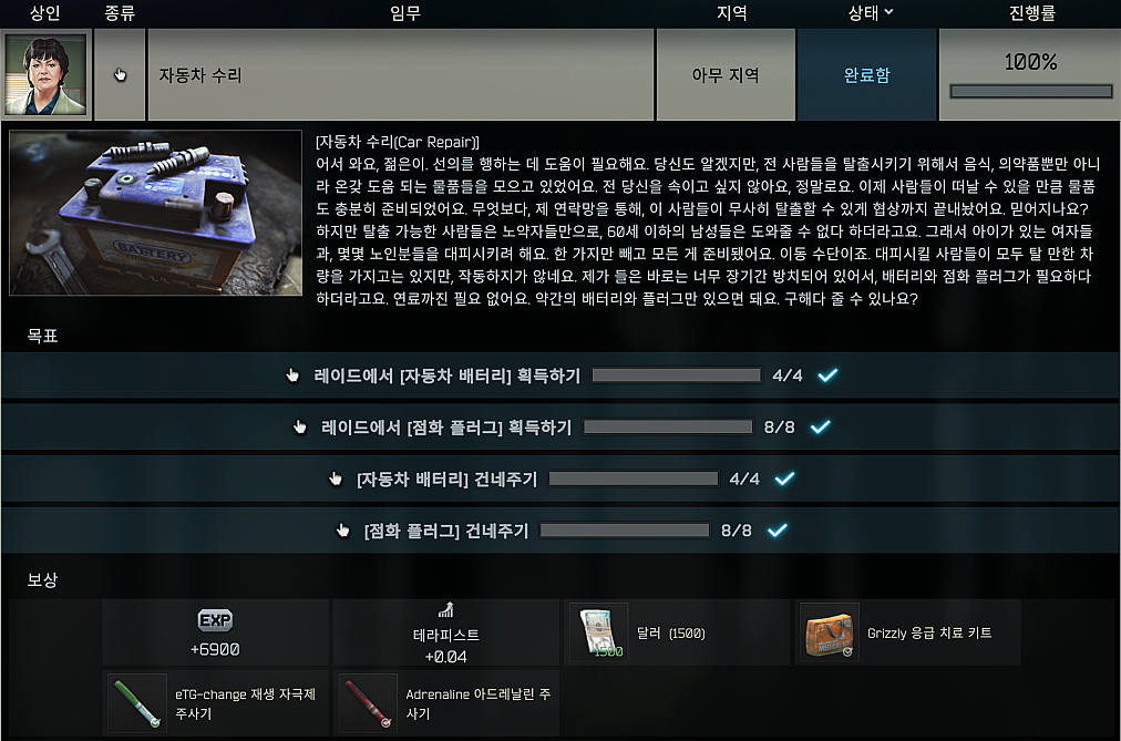 타르코프 퀘스트 - 자동차 수리 (Car Repair) 본문