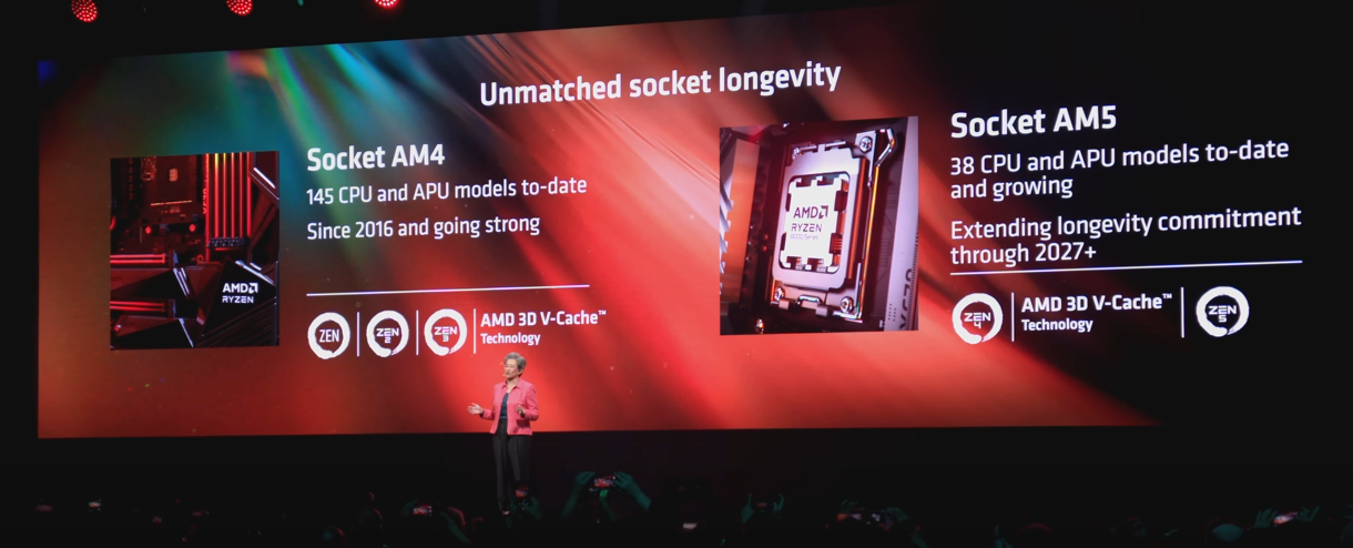 이어서 리사 수 박사는 전 세계 IT마니아를 감동시키기 시작했는데요. 2016년 출시한 AM4 소켓은 이제 더 이상 신제품은 없을 것이라 생각했지만 다음 달(7월)에 5800XT와 5900XT를 출시하여 AM4 소켓에 대한 지원도 지속 이어나갈 것이라고 밝혔습니다. 횟수로만 거의 9년 차 지원입니다. 2~3세대마다 소켓이 바뀌는 인텔과 비교할 수밖에 없는 부분입니다. 그러면서 AM5 소켓을 사용하는 프로세스도 오래도록 볼 수 있을 것이라고 했습니다!