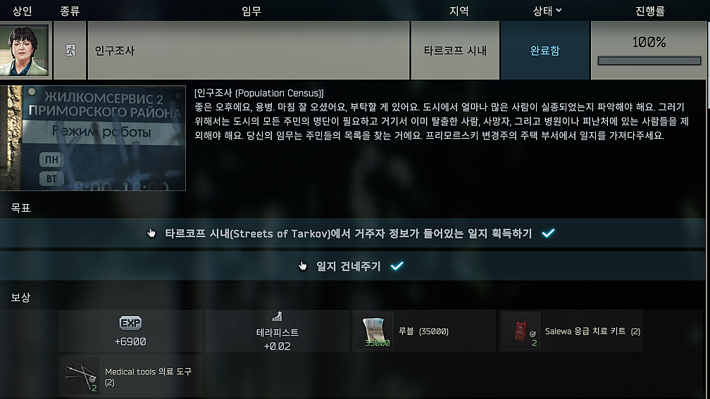 타르코프 퀘스트 - 인구조사 (Population Census) 본문