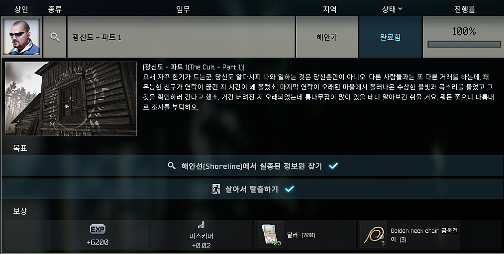 타르코프 퀘스트 - 광신도 - 파트 1 (The Cult - Part 1) 본문