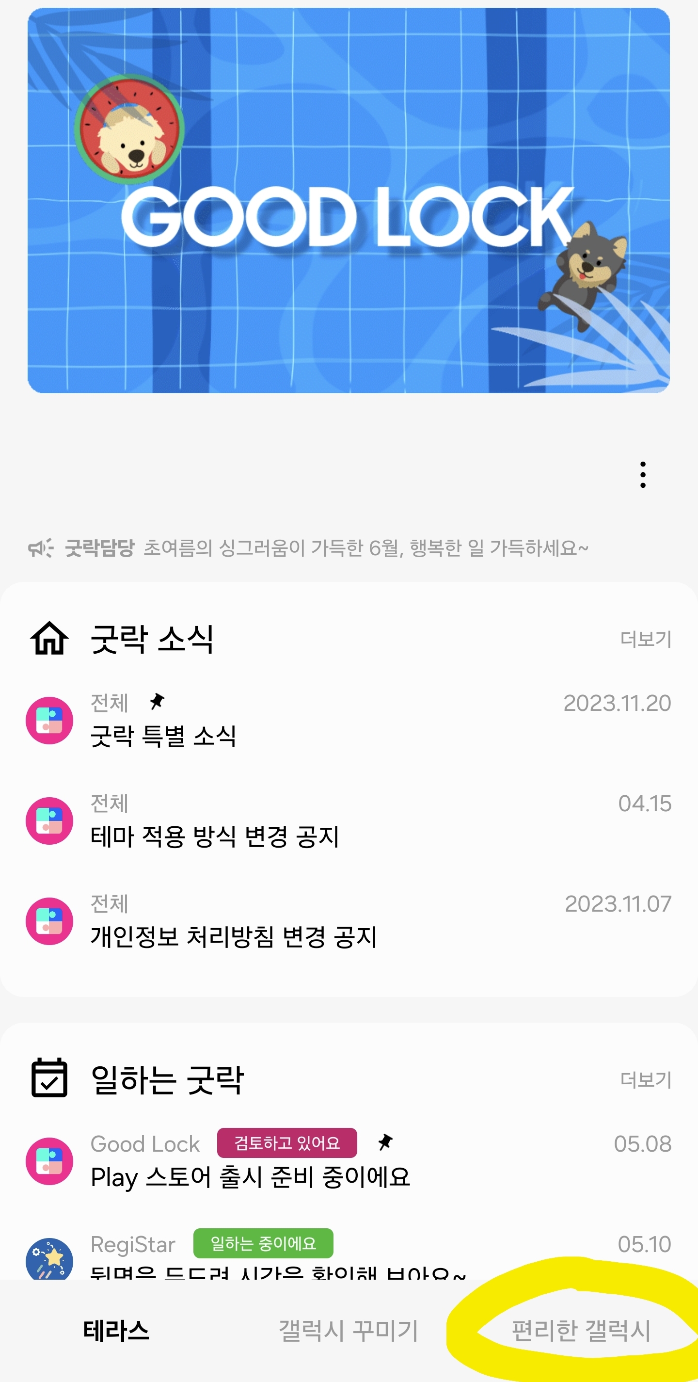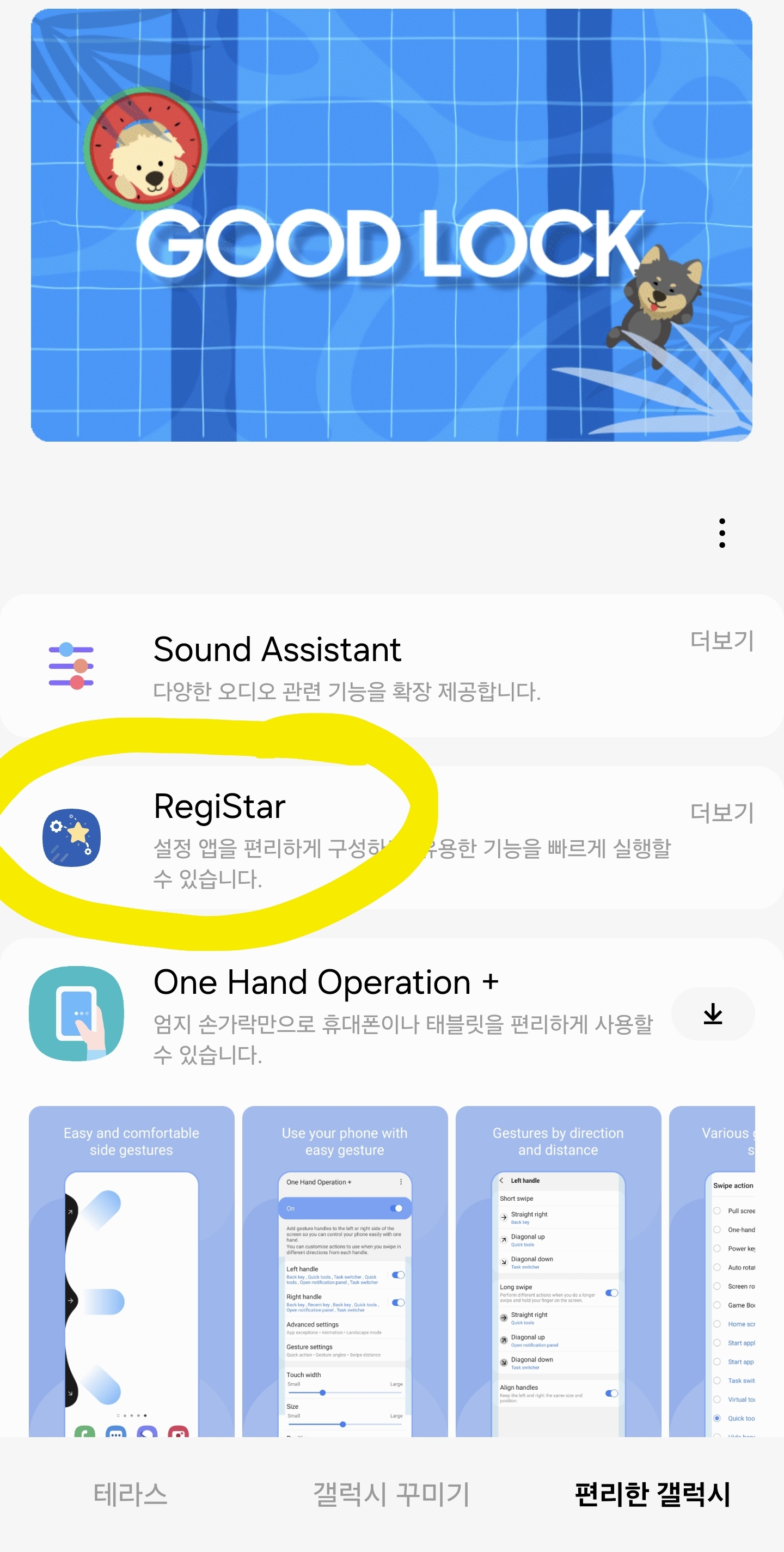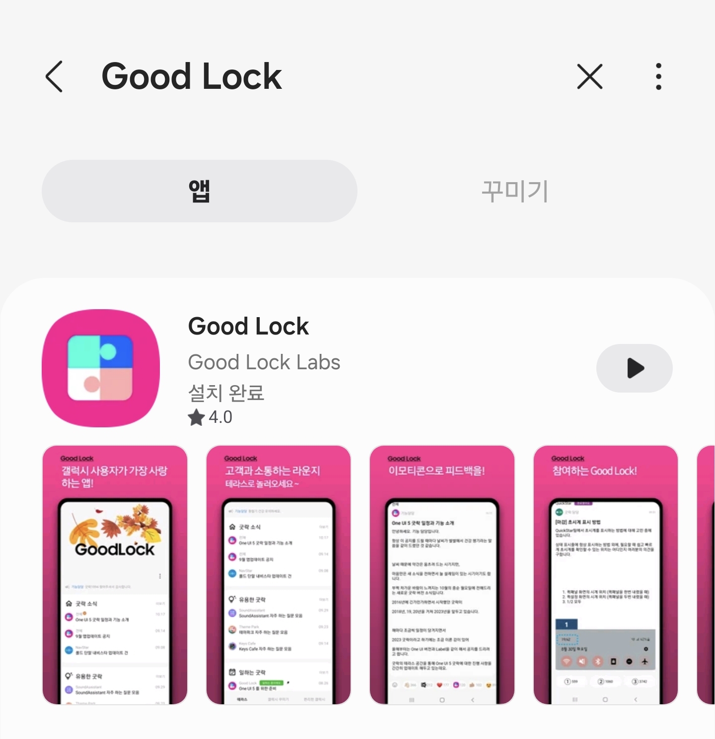 갤럭시 스토어에서 Good Lock를 검색하여 설치하시고 실행합니다.
