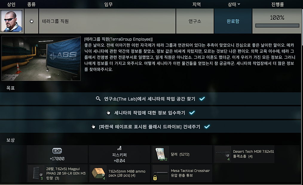 타르코프 퀘스트 - 테라그룹 직원 (TerraGroup Employee) 본문