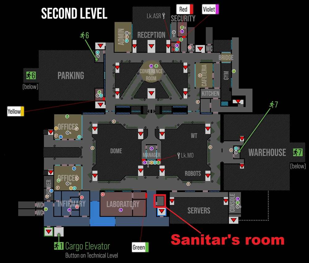 이 방은 잠겨 있어, Keycard with a blue marking으로 열어야 합니다. 이 키카드는 세니타를 잡으면 낮은 확률로 얻을 수 있습니다.