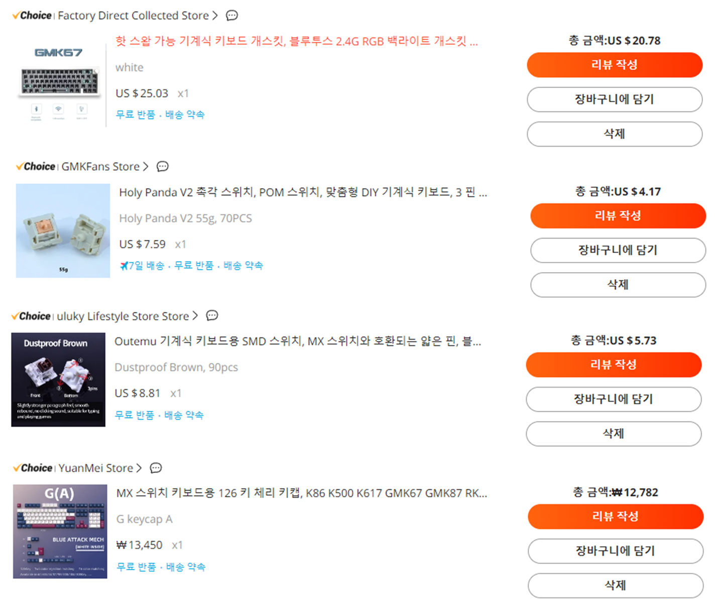 홀리팬더 스위치는 70 pcs에 4.17달러 만만치 않게 저렴했는데요. 다행히 문제가 있는 스위치는 없었습니다. 너무 저렴하여 구입했지만 70 pcs밖에 되지 않아 3개만 잘못되어도 빌드가 안될까 봐 걱정했는데 너무 다행이었습니다.