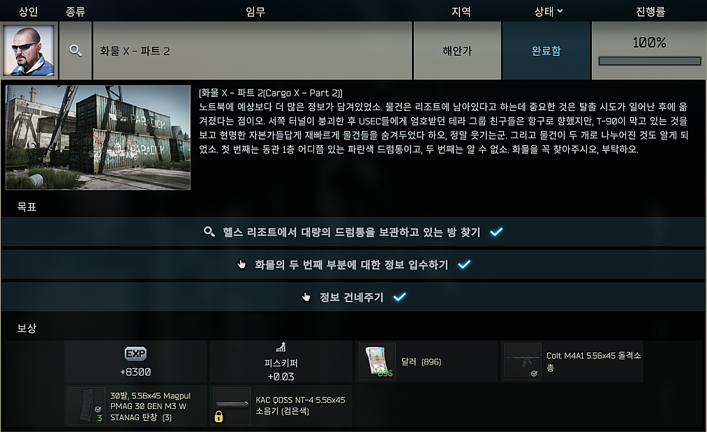 타르코프 퀘스트 - 화물 X - 파트 2 (Cargo X - Part 2) 본문