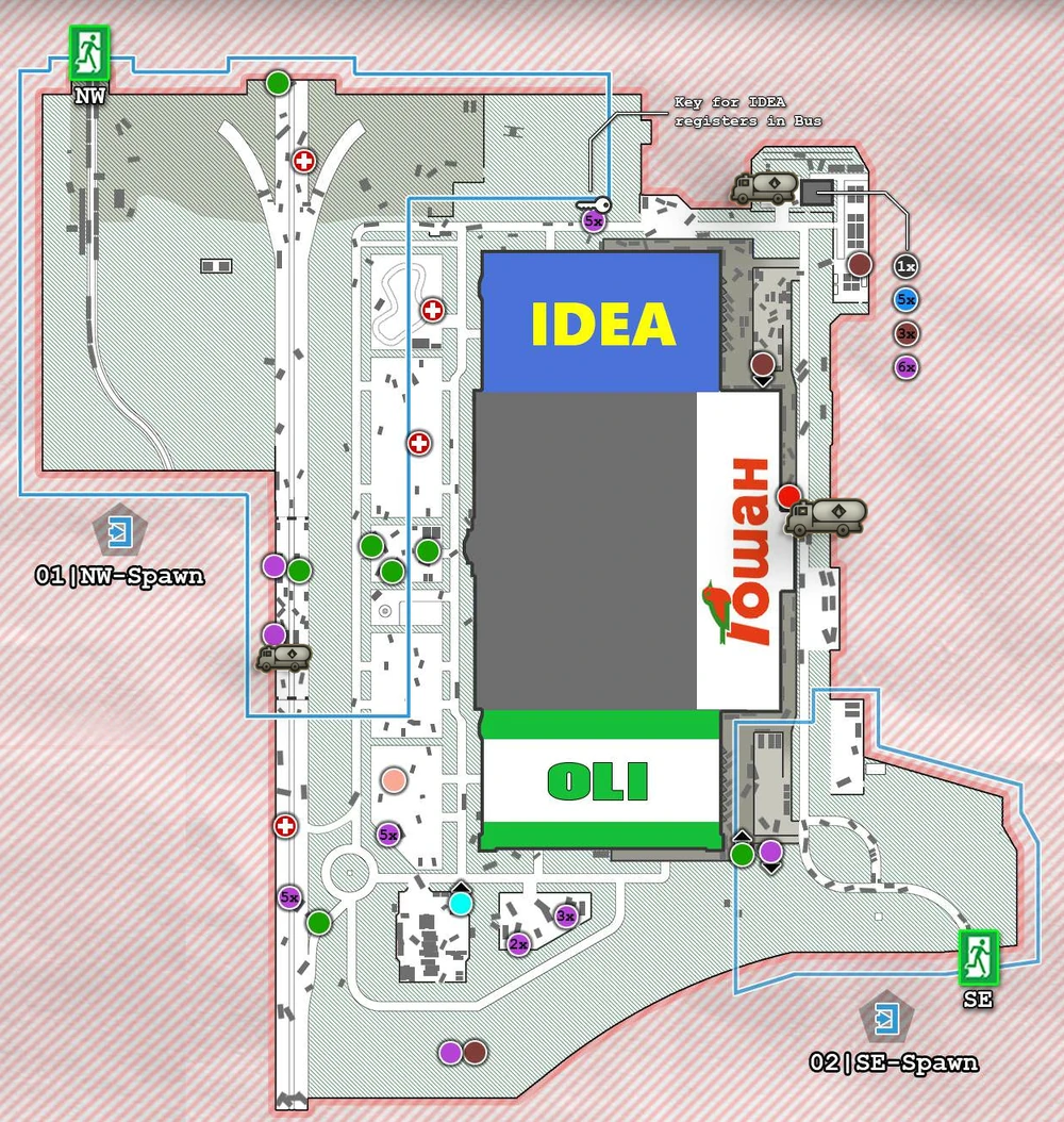 유조차는 각각 Scav camp 탈출구 근처, Power Station 탈출구 근처, Hole in Fence 탈출구 근처에 있습니다. 유조차에 MS2000 마커를 붙여야 합니다.