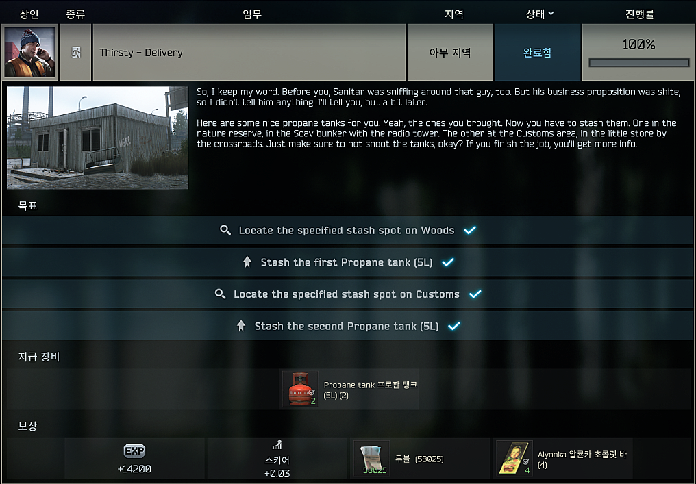 타르코프 퀘스트 - Thirsty - Delivery 본문