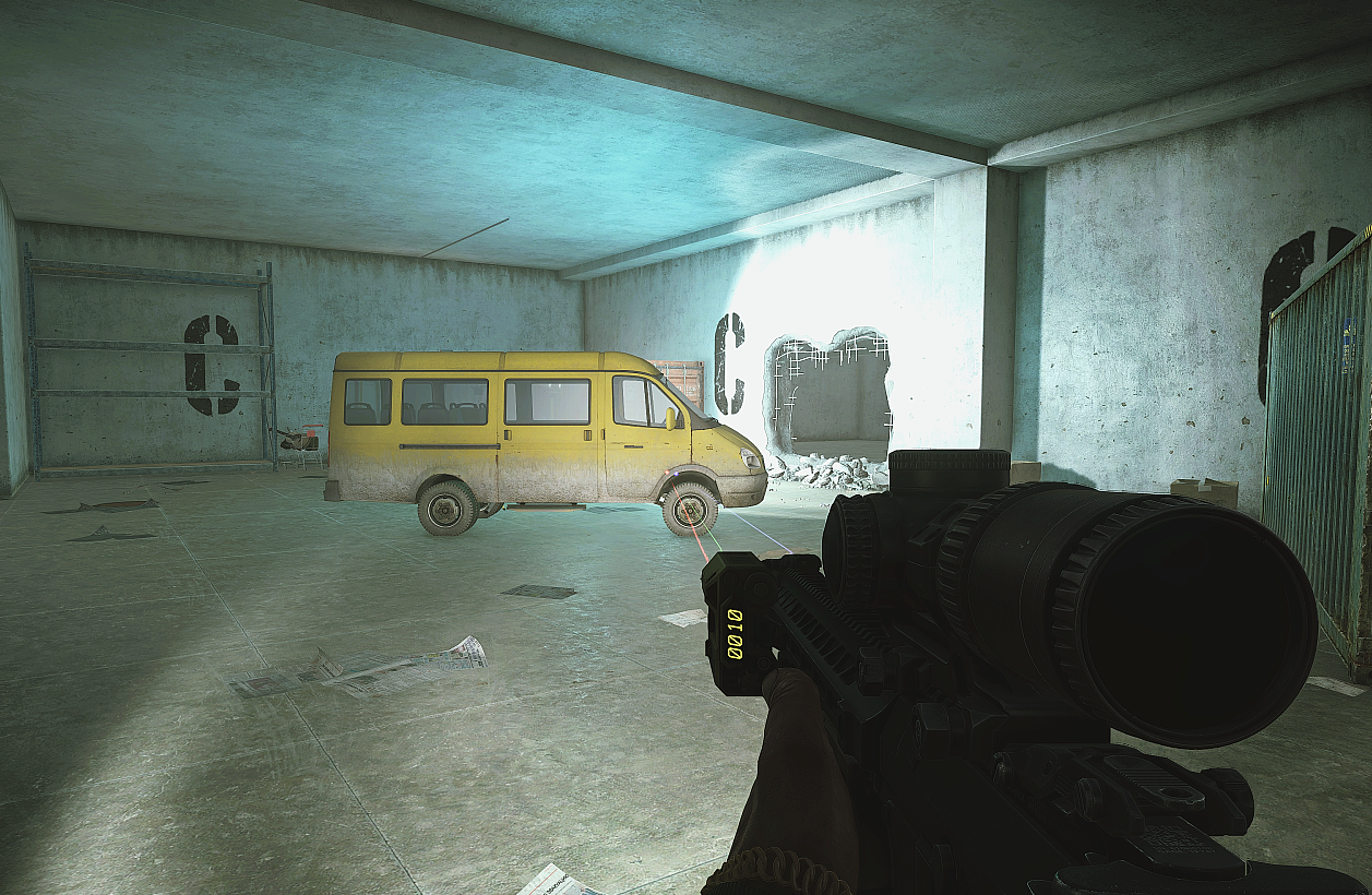- 인터체인지(Interchange)에서 첫 번째 미니버스를 찾아 MS2000 마커를 설치하세요.