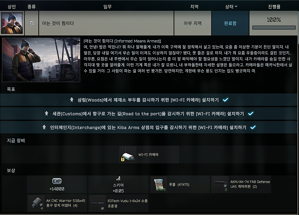 타르코프 퀘스트 - 아는 것이 힘이다 (Informed Means Armed) 본문