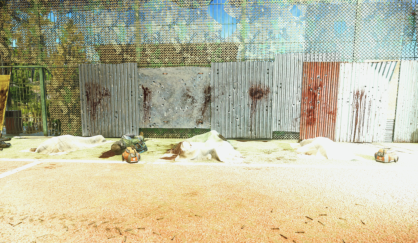 테니스장에 있는 시체들 가까이 다가가면 퀘스트가 진행됩니다. 이후 살아서 탈출하면 완료입니다.