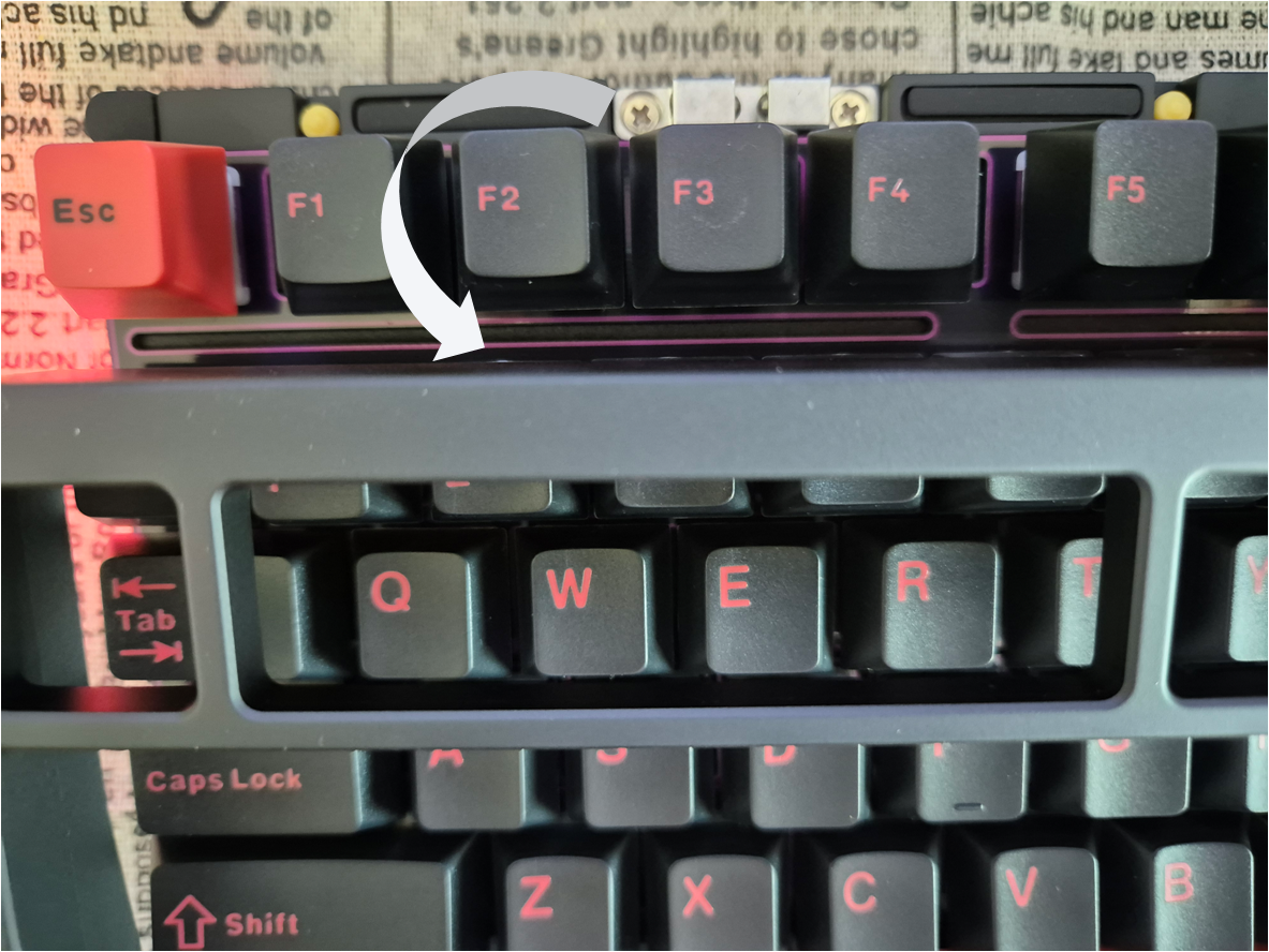키캡 안쪽에는 극지해축 스위치가 보이네요. 레이니75/아이니75와 동일하게 Caps Lock키캡을 제거하면 유무선 전환 스위치가 숨어 있습니다.