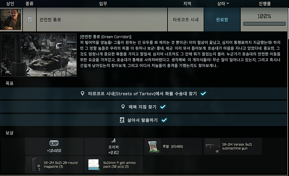 타르코프 퀘스트 - 안전한 통로 (Green Corridor) 본문