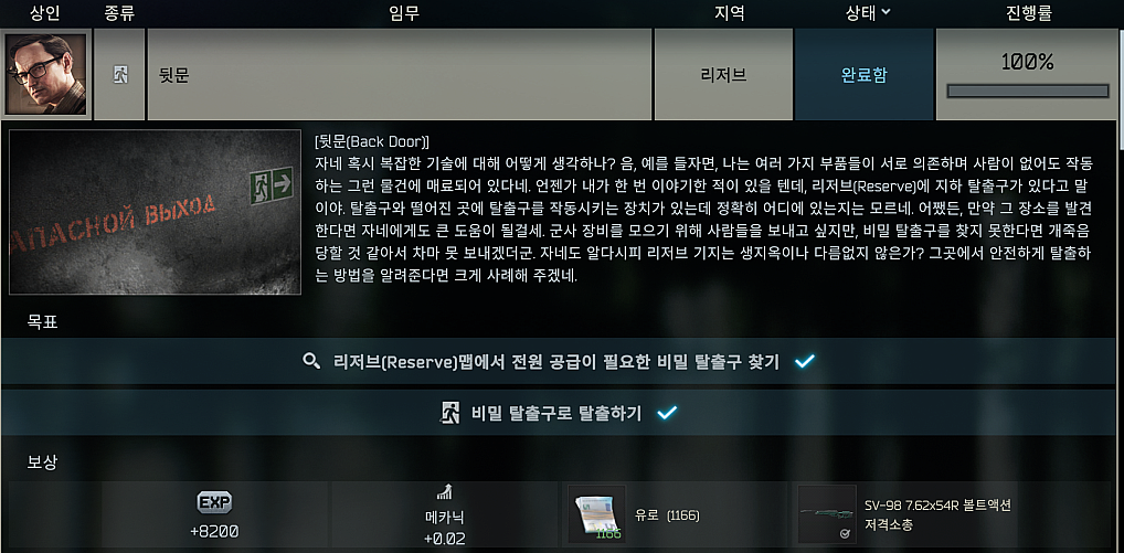 타르코프 퀘스트 - 뒷문 (Back Door) 본문