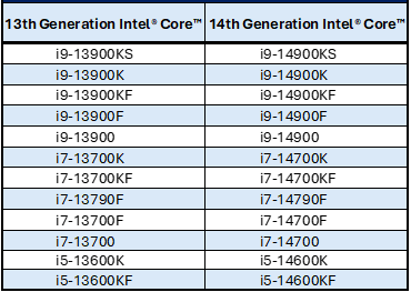 인텔도 0x129 패치는 방지가 아닌 단순 완화 조치임을 뜻하는 것인지 13세대 및 14세대 프로세서에 대한 보증을 2년 추가 연장한다고 밝혔습니다. 이에 따라 아래 표에 해당하는 13, 14세대 CPU는 구매일로부터 최대 5년까지 연장되었습니다.