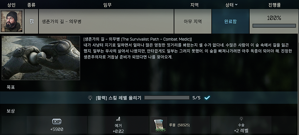 타르코프 퀘스트 생존가의 길 - 의무병 (The Survivalist Path - Combat Medic)
