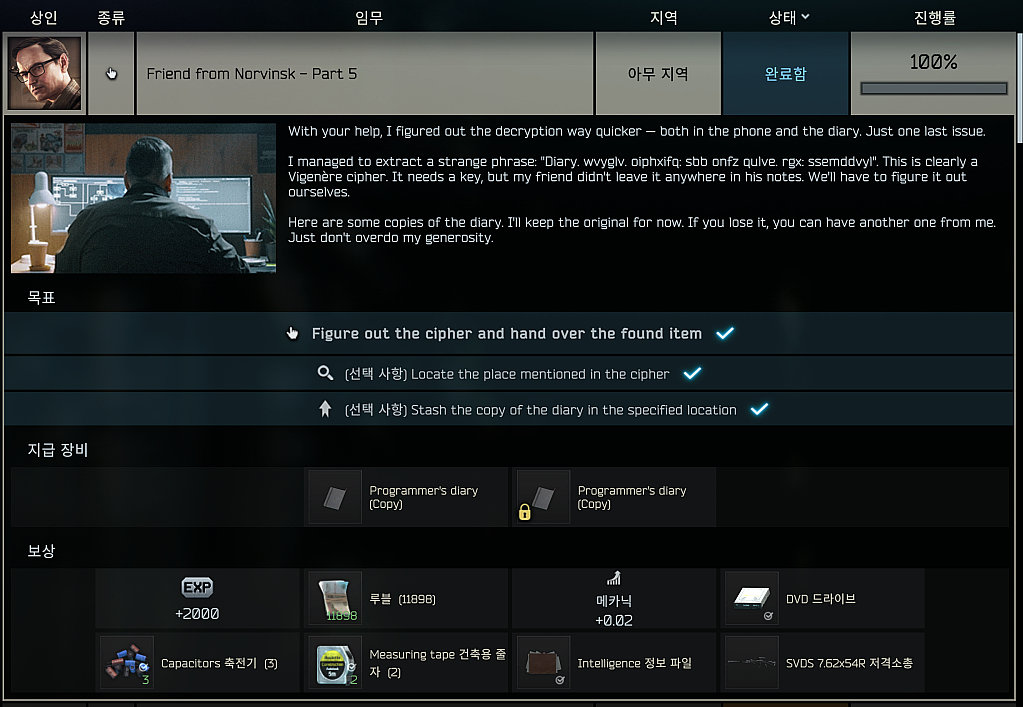 타르코프 퀘스트 - Friend from Norvinsk - Part 5 본문
