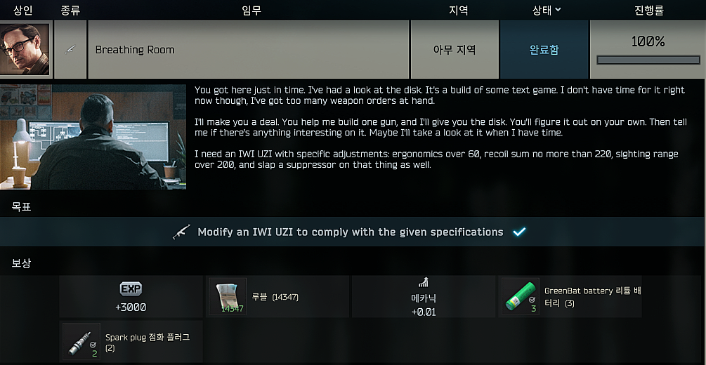타르코프 퀘스트 - Breathing Room 본문